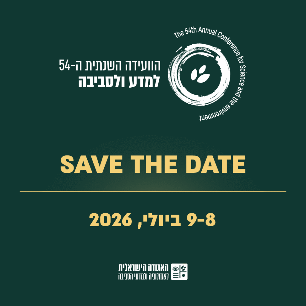 חוקרות, חוקרים ויוזמות בתחום הסביבה והאקלים מוזמנים להגיש תקצירים ולהציג את העשייה והמחקר שלכם על הבמה המרכזית בישראל. הוועידה השנתית של האגודה הישראלית לאקולוגיה ולמדעי הסביבה היא מפגש רב מגזרי שמציג מחקרים אקדמיים, יוזמות פורצות דרך ופרויקטים סביבתיים מובילים של רשויות, ארגונים והמגזר העסקי.