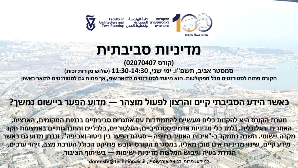 בואו לקורס מדיניות סביבתית (02070407) בסמסטר אביב.