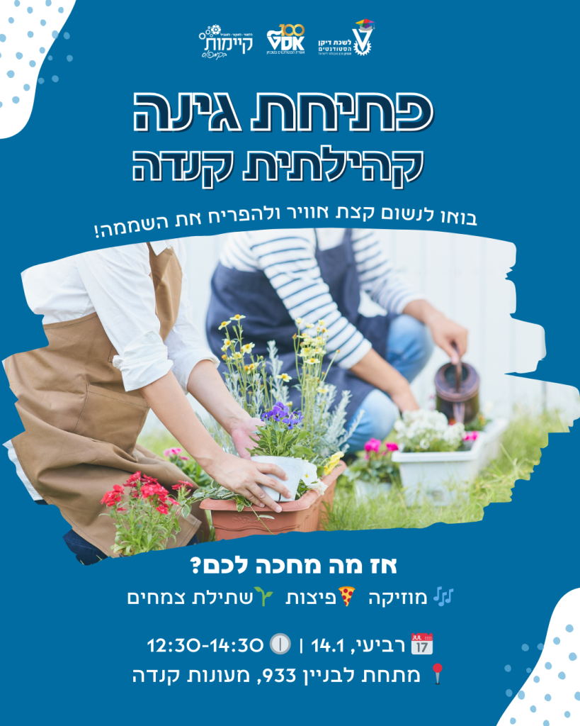 מזמינים אתכם לפתיחה חגיגית של הגינה הקהילתית