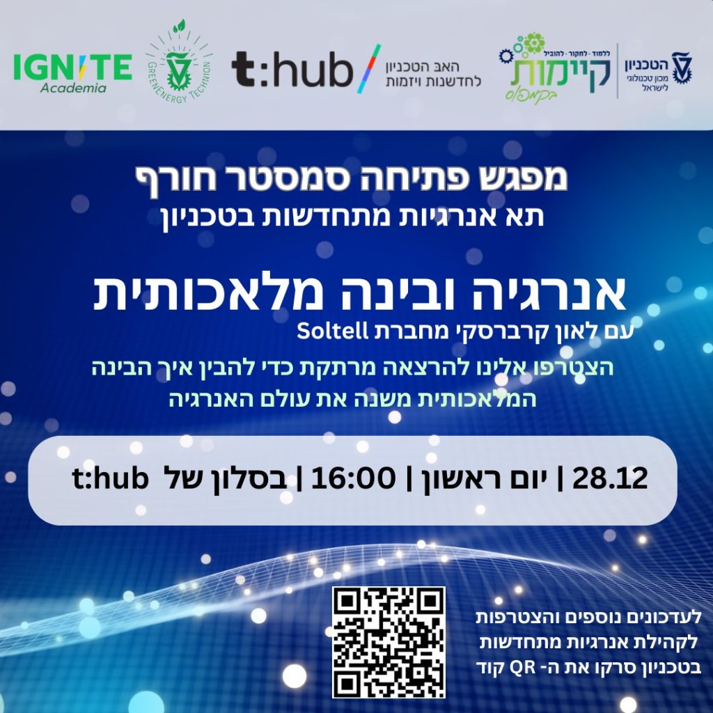 The Technion Renewable Energies Hub is excited to invite you to the opening event of the winter semester, dedicated to the intersection of energy and artificial intelligence.