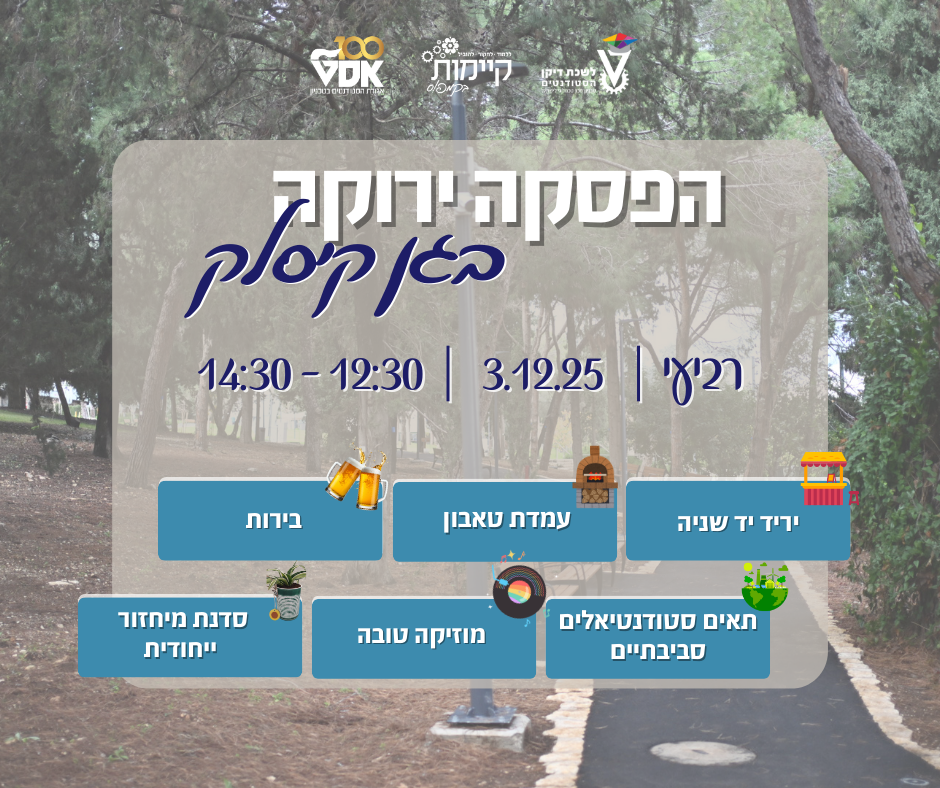 The Sustainability Center, ASAT and the Dean of Students invite the Technion community to take a refreshing Green Break at Kislak Garden.